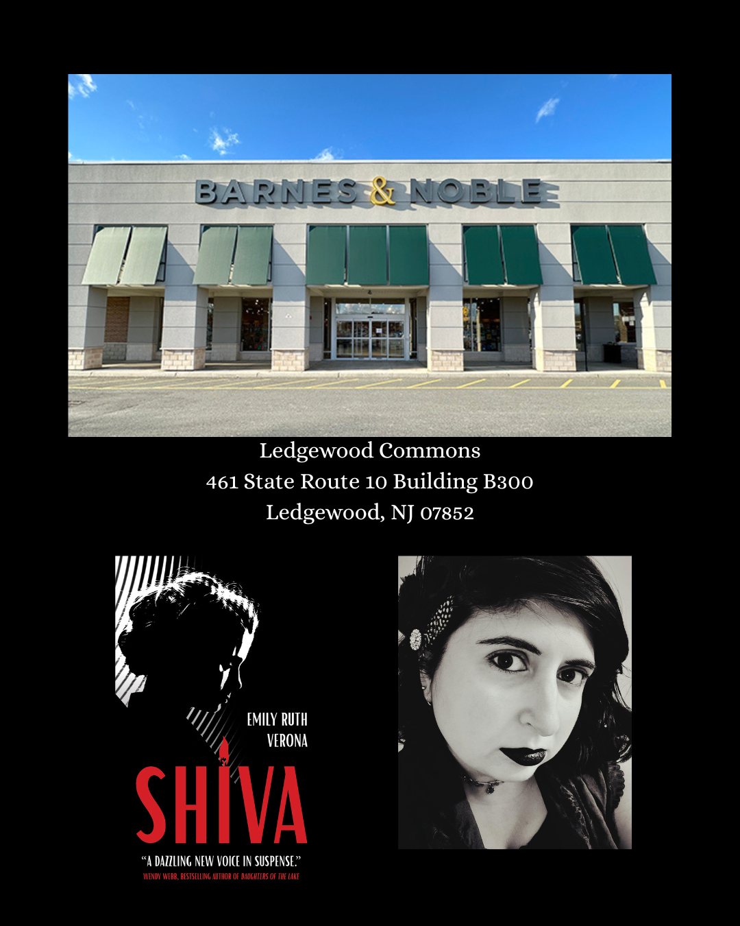 Emily returns to Barnes & Noble in Ledgewood, New Jersey to sign copies of her new novella, Shiva, as well as copies of her 2024 debut novel, Midnight on Beacon Street.